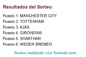 Lista de participantes: WEDER BREMEN, MANCHESTER CITY, SHAKTHAR, GIRONDINS, AJAX, TOTTENHAM.