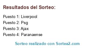 Lista de participantes: Psg, Liverpool, Paranaense, Ajax.