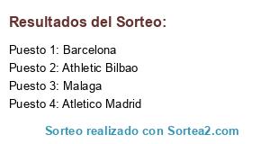 Lista de participantes: Malaga, Athletic Bilbao, Barcelona, Atletico Madrid.