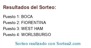 Lista de participantes: WEST HAM, WORLSBURGO, BOCA, FIORENTINA.
