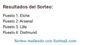 Lista de participantes: Elche, Dormunt, Arsenal, Lille.