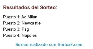 Lista de participantes: Ac.Milan, Psg, Newcastle, Napoles.