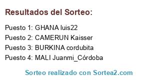 Lista de participantes: GHANA luis22, MALI Juanmi_Córdoba, CAMERUN Kaisser, BURKINA cordubita.