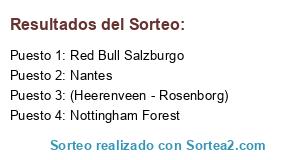 Lista de participantes: Nottingham Forest, Red Bull Salzburgo, Nantes, (Heerenveen - Rosenborg).