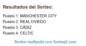 Lista de participantes: MANCHESTER CITY, REAL OVIEDO, CELTIC, CÁDIZ.