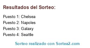 Lista de participantes: Napoles, Seattle, Chelsea, Galaxy.