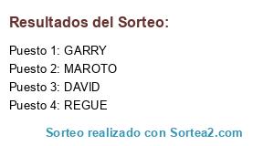 Lista de participantes: GARRY, DAVID, MAROTO, REGUE.