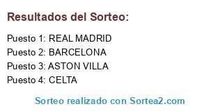 Lista de participantes: REAL MADRID, ASTON VILLA, BARCELONA, CELTA.