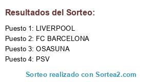 Lista de participantes: FC BARCELONA, PSV, LIVERPOOL, OSASUNA.