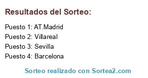 Lista de participantes: AT.Madrid, Sevilla, Villareal, Barcelona.