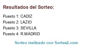 Lista de participantes: LAZIO, CADIZ, R.MADRID, SEVILLA.