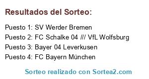 Lista de participantes: FC Schalke 04 /// VfL Wolfsburg, Bayer 04 Leverkusen, FC Bayern München, SV Werder Bremen.