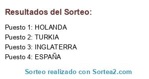Lista de participantes: ESPAÑA, TURKIA, HOLANDA, INGLATERRA.