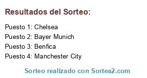 Lista de participantes: Manchester City, Bayer Munich, Chelsea, Benfica.