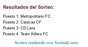 Lista de participantes: Metropolitano FC, CD Lara, Caracas CF, Team Killers FC.