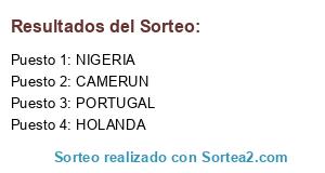 Lista de participantes: PORTUGAL, HOLANDA, NIGERIA, CAMERUN.