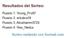 Lista de participantes: Neo_Nekza, Abrahamm0726, Young_Pro97, erkobra18.