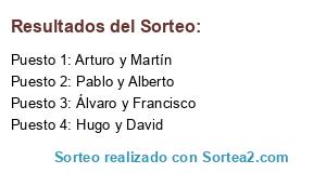 Lista de participantes: Arturo y Martín, Álvaro y Francisco, Hugo y David, Pablo y Alberto.