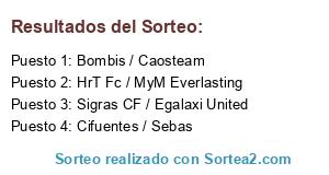 Lista de participantes: HrT Fc / MyM Everlasting, Cifuentes / Sebas, Bombis / Caosteam, Sigras CF / Egalaxi United.
