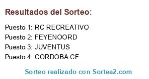 Lista de participantes: CORDOBA CF, JUVENTUS, RC RECREATIVO, FEYENOORD.