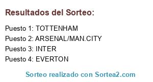 Lista de participantes: EVERTON, ARSENAL/MAN.CITY, TOTTENHAM, INTER.