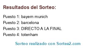 Lista de participantes: barcelona, totenham, bayern munich, DIRECTO A LA FINAL.