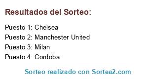 Lista de participantes: Milan, Chelsea, Manchester United, Cordoba.
