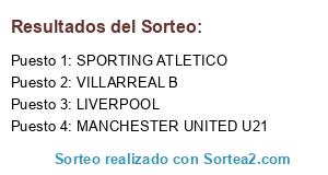 Lista de participantes: MANCHESTER UNITED U21, LIVERPOOL U21, RIVER PLATE RESERVAS, VILLARREAL B.