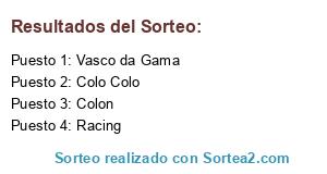 Lista de participantes: Racing, Colo Colo, Vasco da Gama, Colon.