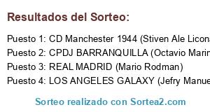 Lista de participantes: LOS ANGELES GALAXY (Jefry Manuel), CD Manchester 1944 (Stiven Ale Licona), CPDJ BARRANQUILLA (Octavio Marin), REAL MADRID (Mario Rodman).