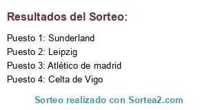 Lista de participantes: Sunderland, Atlético de madrid, Celta de Vigo, Leipzig.