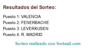 Lista de participantes: LEVERKUSEN, FENERBACHE, R. MADRID, VALENCIA.