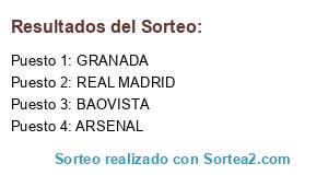 Lista de participantes: REAL MADRID, GRANADA, BAOVISTA, ARSENAL.