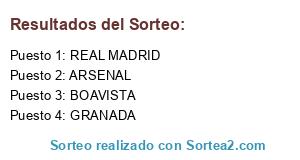 Lista de participantes: REAL MADRID, GRANADA, ARSENAL, BOAVISTA.