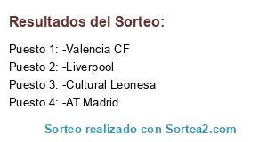 Lista de participantes: -Cultural Leonesa, -AT.Madrid, -Liverpool, -Valencia CF.