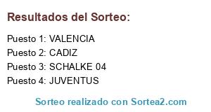 Lista de participantes: JUVENTUS, VALENCIA, CADIZ, SCHALKE 04.