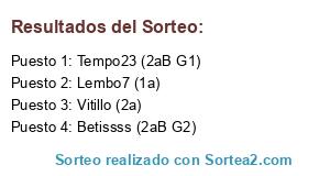 Lista de participantes: Lembo7 (1a), Vitillo (2a), Tempo23 (2aB G1), Betissss (2aB G2).