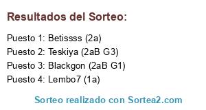 Lista de participantes: Blackgon (2aB G1), Betissss (2a), Teskiya (2aB G3), Lembo7 (1a).