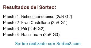 Lista de participantes: Betico_conquense (2aB G2), Nane Team (2aB G3), Fran Castellano (2aB G1), Piti (2aB G2).