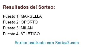 Lista de participantes: MILAN, ATLETICO, OPORTO, MARSELLA.