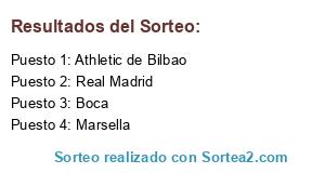 Lista de participantes: Marsella, Boca, Athletic de Bilbao, Real Madrid.