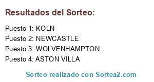 Lista de participantes: KOLN, ASTON VILLA, NEWCASTLE, WOLVENHAMPTON.