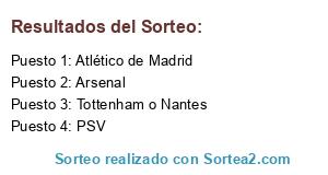 Lista de participantes: PSV, Tottenham o Nantes, Arsenal, Atlético de Madrid.