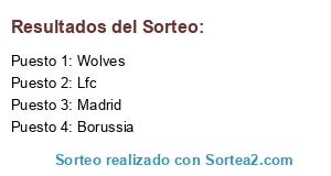 Lista de participantes: Wolves, Borussia, Lfc, Madrid.