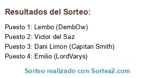 Lista de participantes: Lembo (DembOw), Victor del Saz, Emilio (LordVarys), Dani Limon (Capitan Smith).