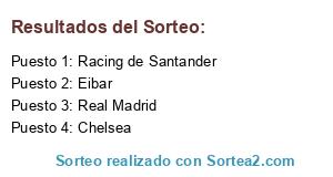 Lista de participantes: Racing de Santander, Eibar, Chelsea, Real Madrid.