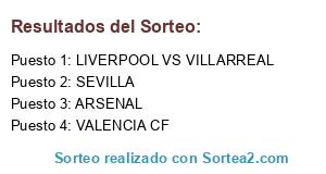 Lista de participantes: SEVILLA, ARSENAL, VALENCIA CF, LIVERPOOL VS VILLARREAL.