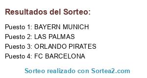 Lista de participantes: LAS PALMAS, ORLANDO PIRATES, BAYERN MUNICH, FC BARCELONA.