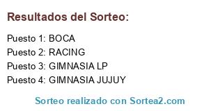 Lista de participantes: GIMNASIA LP, GIMNASIA JUJUY, BOCA, RACING.