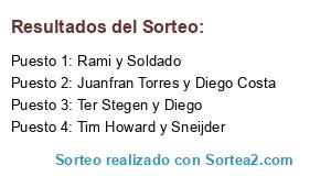 Lista de participantes: Hugo Lloris y Arda Turan, Marchetti y Felipe Melo, Tim Howard y Sneijder, Ter Stegen y Diego, Mexes y Falcao, Rami y Soldado, Abate y Balotelli, Juanfran Torres y Diego Costa.